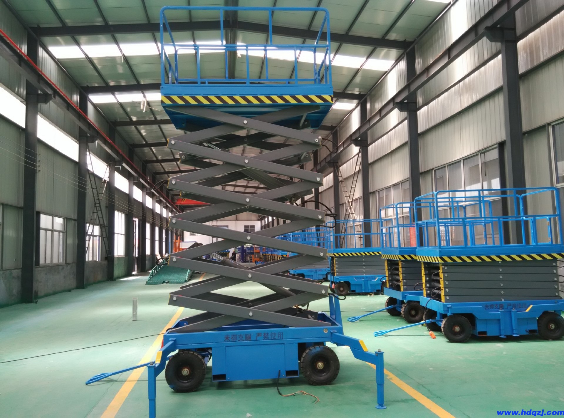 4,固定式液壓升降機升起后不得移動,四個支腿未撐緊不得起升作業(yè)。
